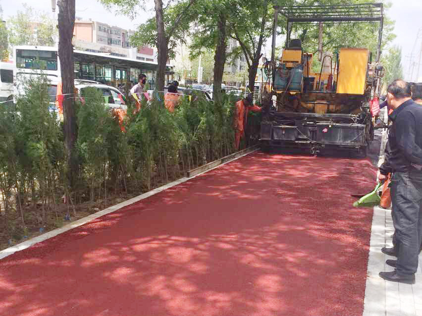 5月14日,包头市巴彦塔拉大街道路改造项目彩色沥青混合料上面层试验段铺筑成功。本次摊铺为非机动车道上面层3cm厚细粒式铁红色沥青砼。
