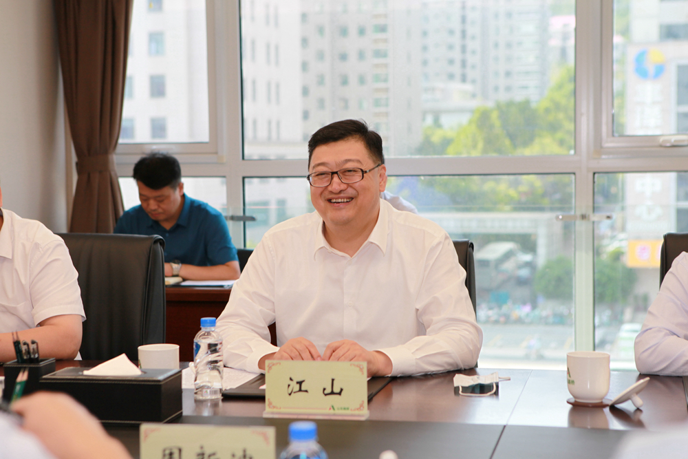 8月4日,历下区区委书记江山到山东路桥调研。山东高速集团总工程师、山东路桥党委书记、董事长周新波,党委副书记、董事、总经理林存友,党委委员、路桥集团党委书记、董事长张保同,党委委员、监事会主席王爱国等领导陪同调研。历下区副区长王锐,历下区区委办公室主任、区政府党组成员、济南中央商务区发展促进中心主任殷保钦参加活动。