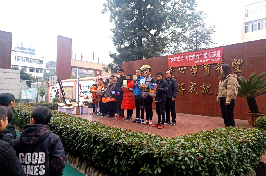 12月30日,公路桥梁第二党支部来到内江市市中区特殊教育学校,开展“关注成长,与爱同行”元旦爱心捐赠活动。