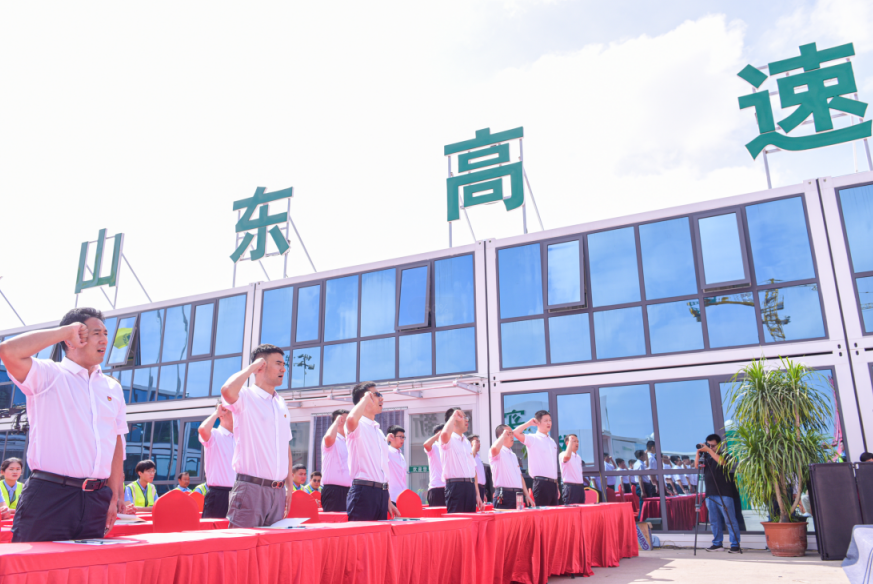 在京台泰安至枣庄改扩建房建三标项目部,齐鲁建设党委副书记、总经理任全刚同志围绕“如何借助房建施工企业特点发挥党员先锋模范作用”和大家进行了深度交流,并带领全体党员重温了入党誓词,激励大家不忘初心、坚定信念,以更加饱满的热情投身到项目大干中。