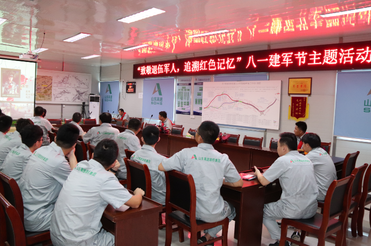 为庆祝中国人民解放军建军93周年,更好地引导员工继承和发扬军人吃苦耐劳的精神和踏实严谨的作风,向军人在漫漫革命征程中立下的不朽功勋致敬,山东省公路桥梁建设有限公司第三党支部组织开展了以“致敬退伍军人,追溯红色记忆”为主题的八一建军节活动。