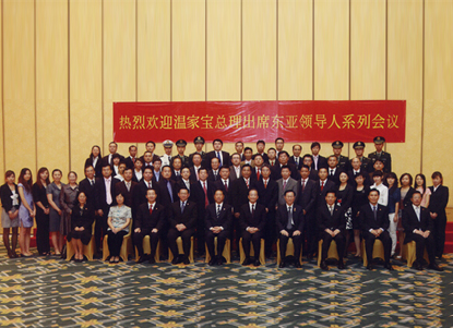 原中共中央政治局常委、国务院总理温家宝2010年10月在越南亲切接见集团公司河内至海防高速公路参建员工代表并合影。